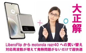 しかしRazr40は多様な周波数に対応しているのでメインで楽天モバイルを使いながらサブでDocomo、au、SoftBankを選ぶことができます。しかしLiberoFlipの場合は基本的にSoftBank回線にしか対応していないのでサブ回線もSoftBank系を選ぶ必要がありました。この機能を使うことができるようになり制約もないとなればこれだけでも乗り換える価値はあります。特に楽天モバイルの場合だとパートナー回線の使用ができないので街中であっても圏外のリスクが跳ね上がります。
