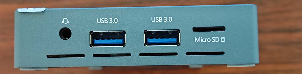 側面ですがこちらにもUSB3.0×2とMicroSDスロット、イヤホン端子が搭載されているのでUSBハブやカードリーダーの持ち運びも不要な点はポイントが高いです。