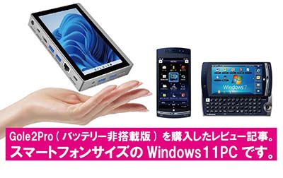 以前、スマートフォンサイズのWindows端末であるARROWS Tab V567/Pとそれよりも高性能な端末としてGole1Proの記事を公開しました。