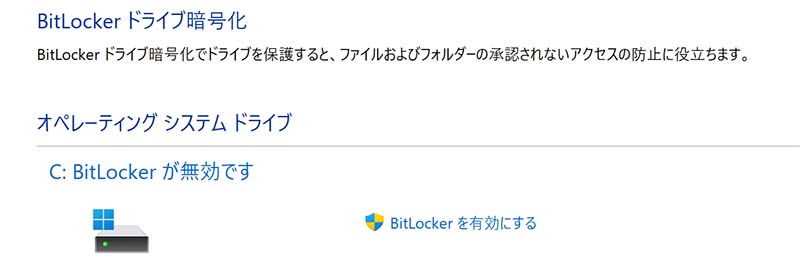③暗号化されているドライブの「BitLockerを無効にする」をクリック